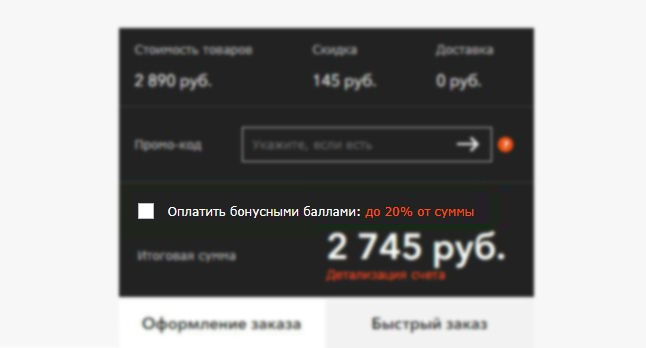 - Вы можете списать любую сумму бонусных баллов за один заказ, но не более чем 50% от общей суммы покупки