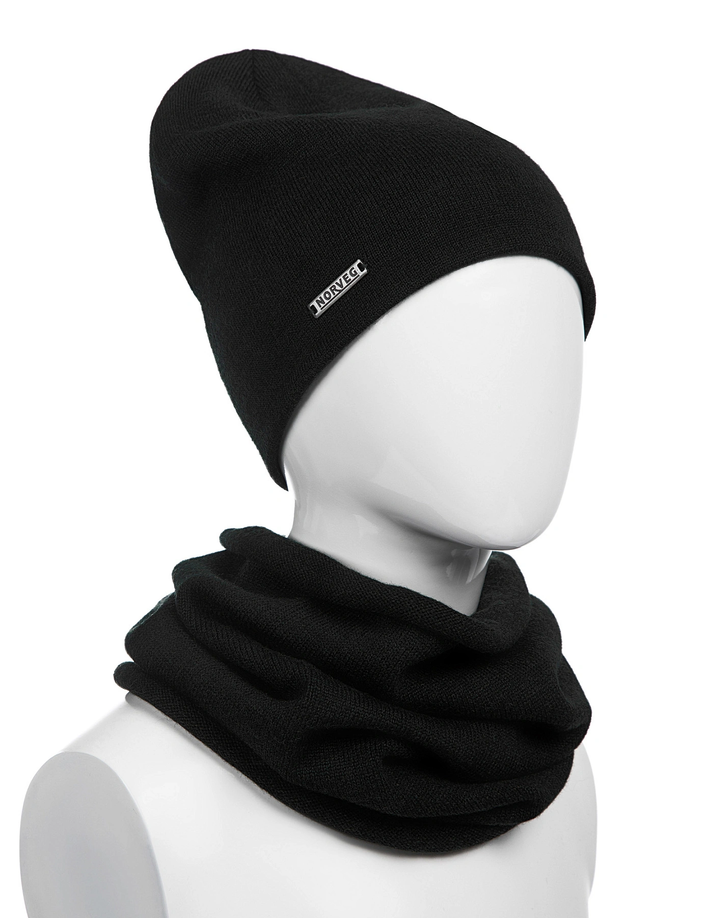 Комплект шапка и снуд из 100% шерсти мериносов для девочек, цвет черный