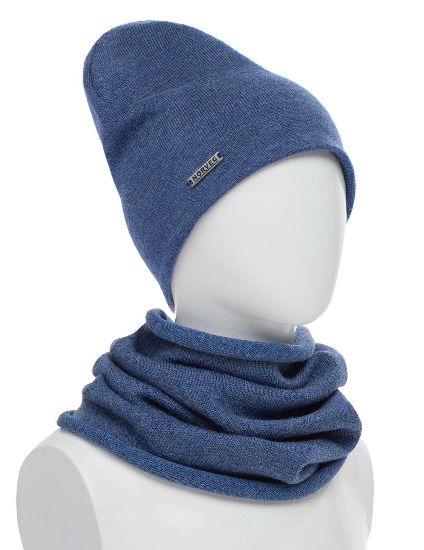 Комплект шапка и снуд из 100% шерсти мериносов для девочек, цвет джинс меланж