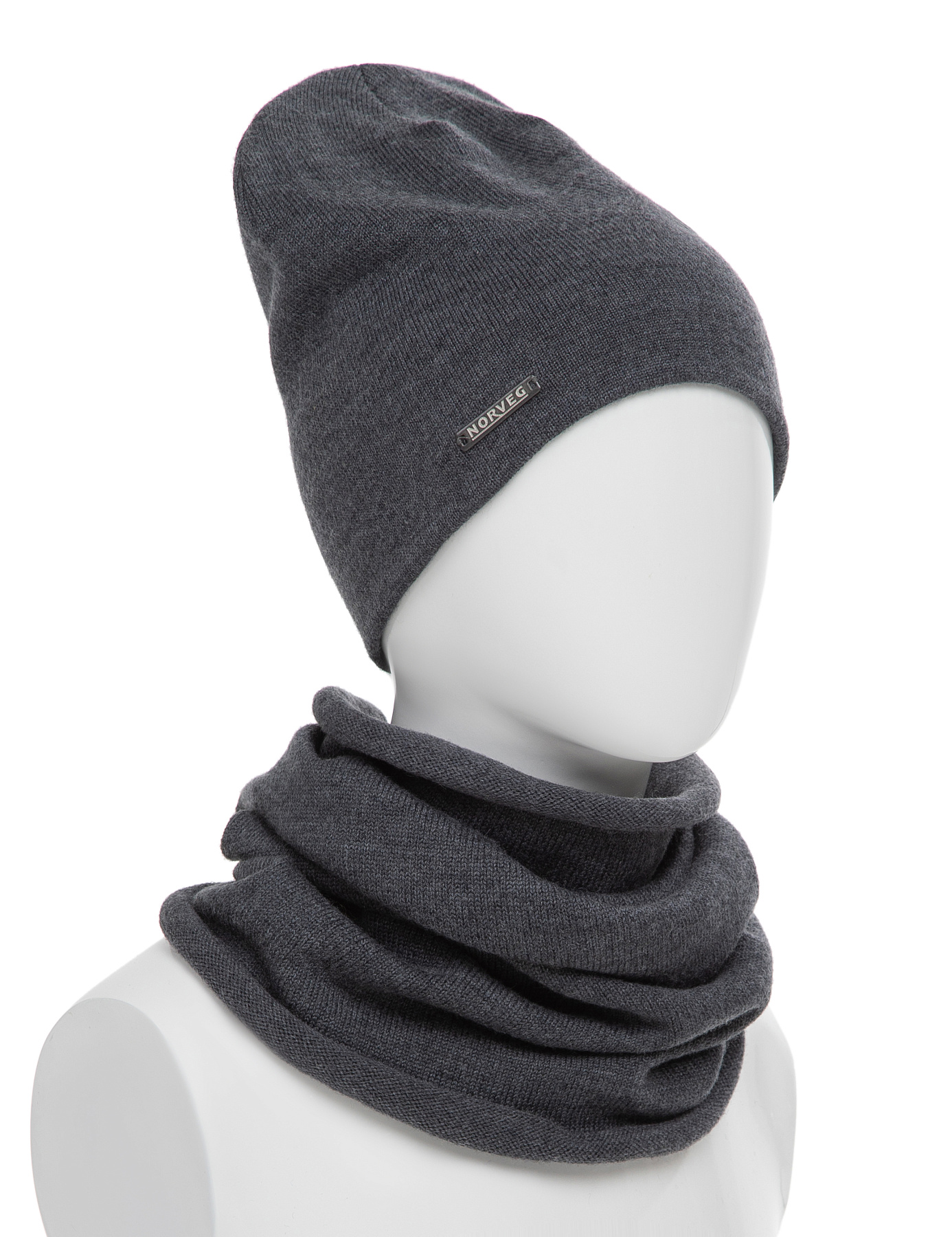 Комплект шапка и снуд из 100% шерсти мериносов для девочек, цвет темно-серый
