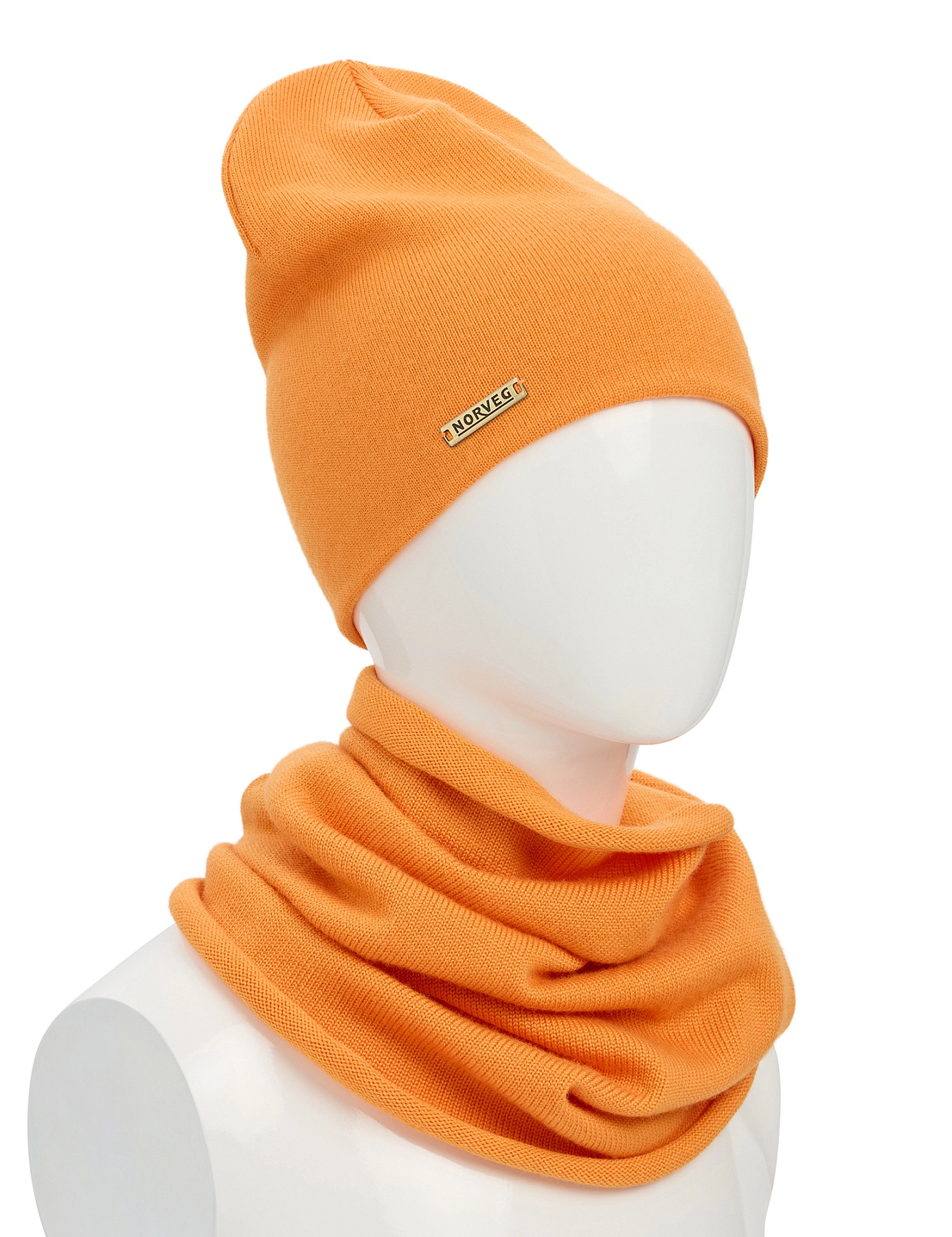Комплект шапка и снуд из 100% шерсти мериносов для девочек, цвет оранжевый