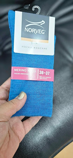 С покупкой теплых носок на осенне-зимний сезон долго не определялись. Конечно купили носки NORVEG. Изделия фирмы NORVEG у нас в приоритете. Носки теплые, тонкие, невесомые. Очень приятные телу. На мой 39 как раз. Будем покупать ещё другого цвета.