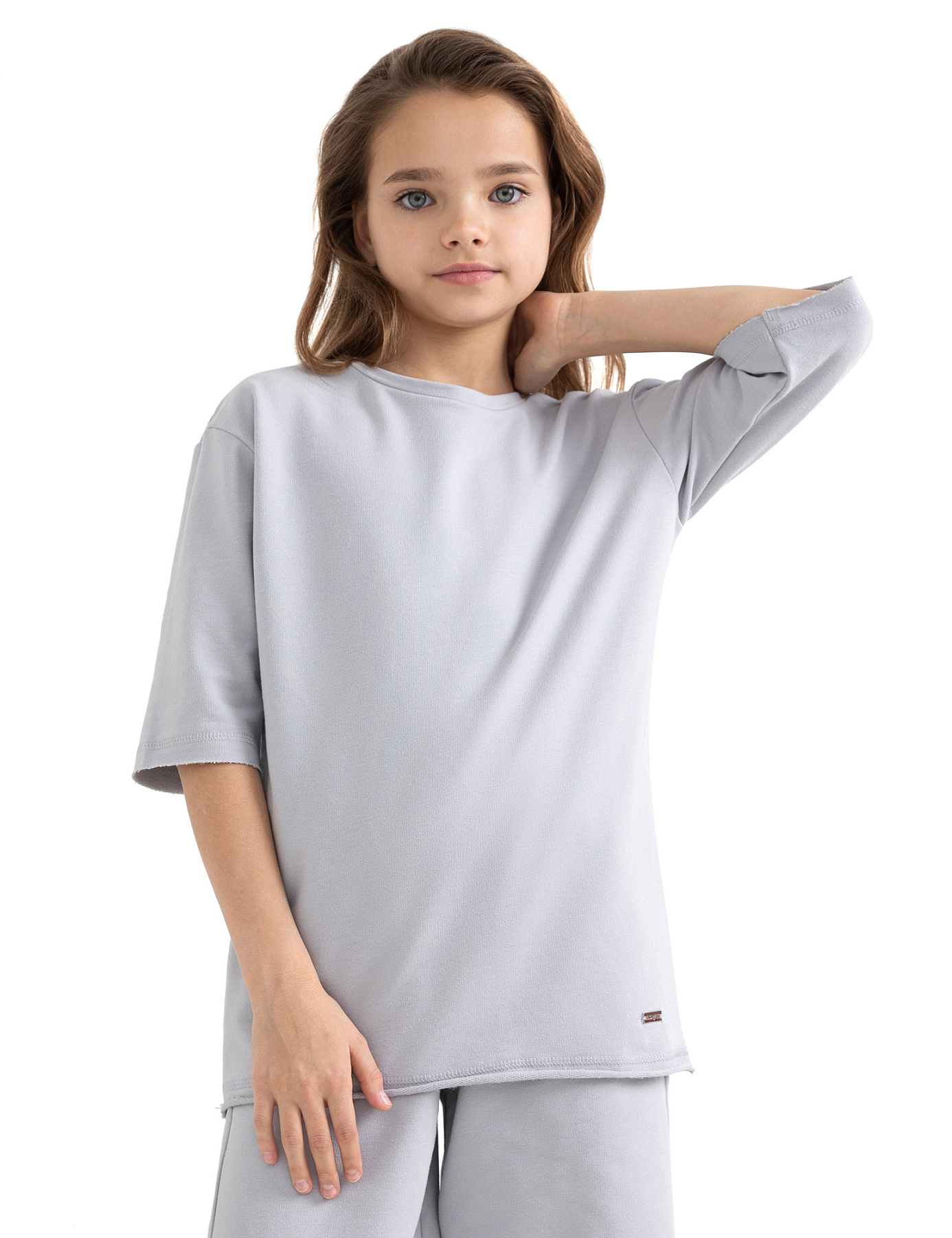 Футболка детская для девочек серии Cotton, цвет светло-серый