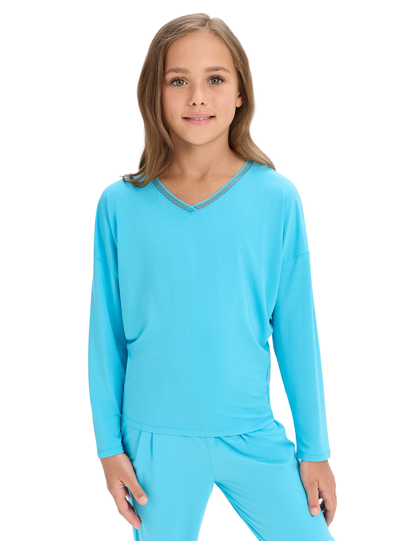 Лонгслив серии Bamboo для девочки, цвет бирюзовый