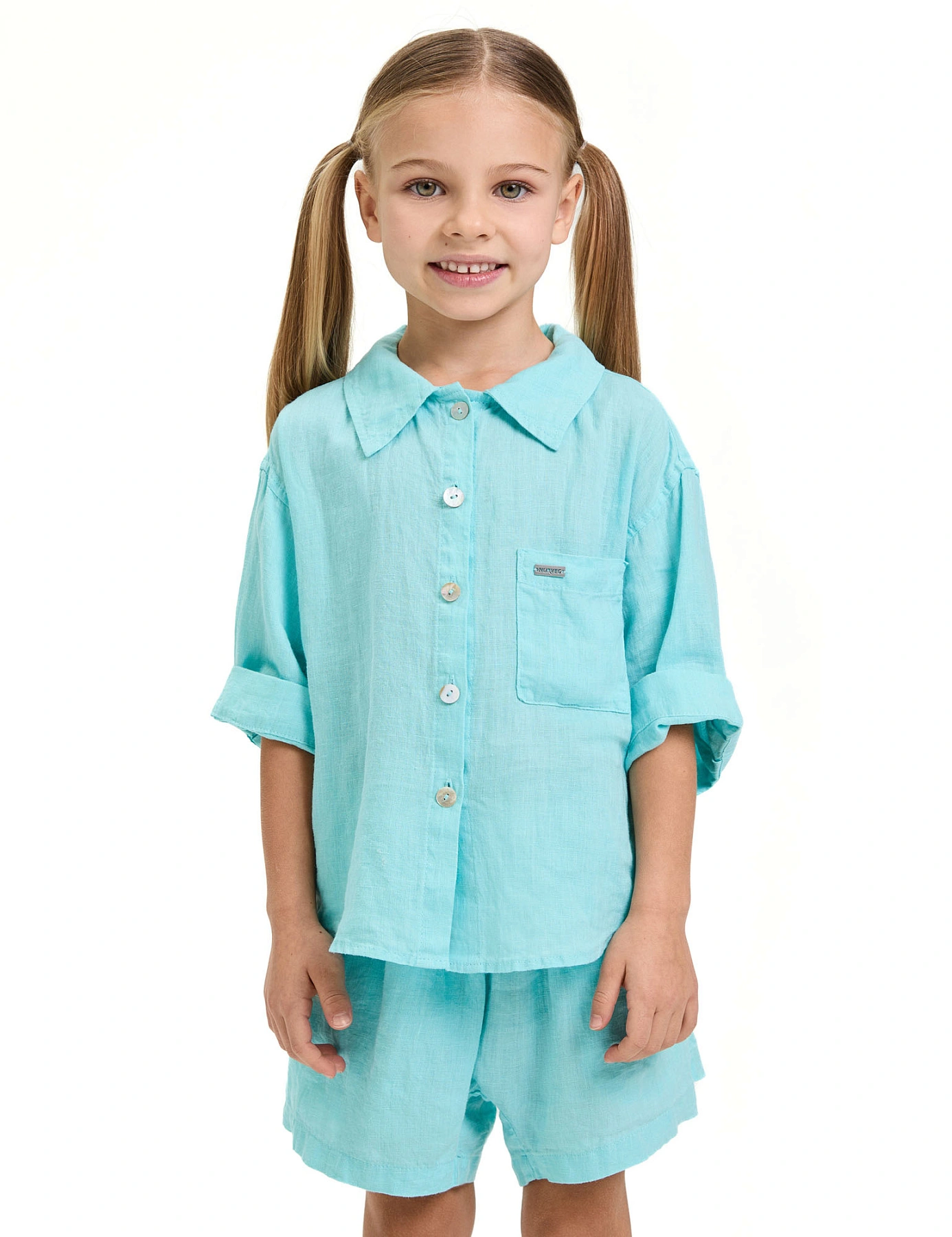 Рубашка для девочки серии LINEN, цвет тиффани