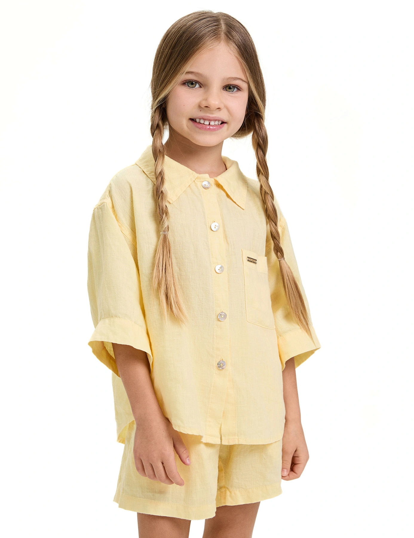Рубашка для девочки серии LINEN, цвет бледно-желтый