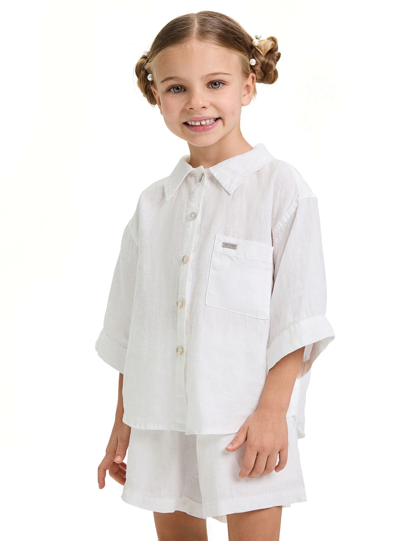 Рубашка для девочки серии LINEN, цвет белый
