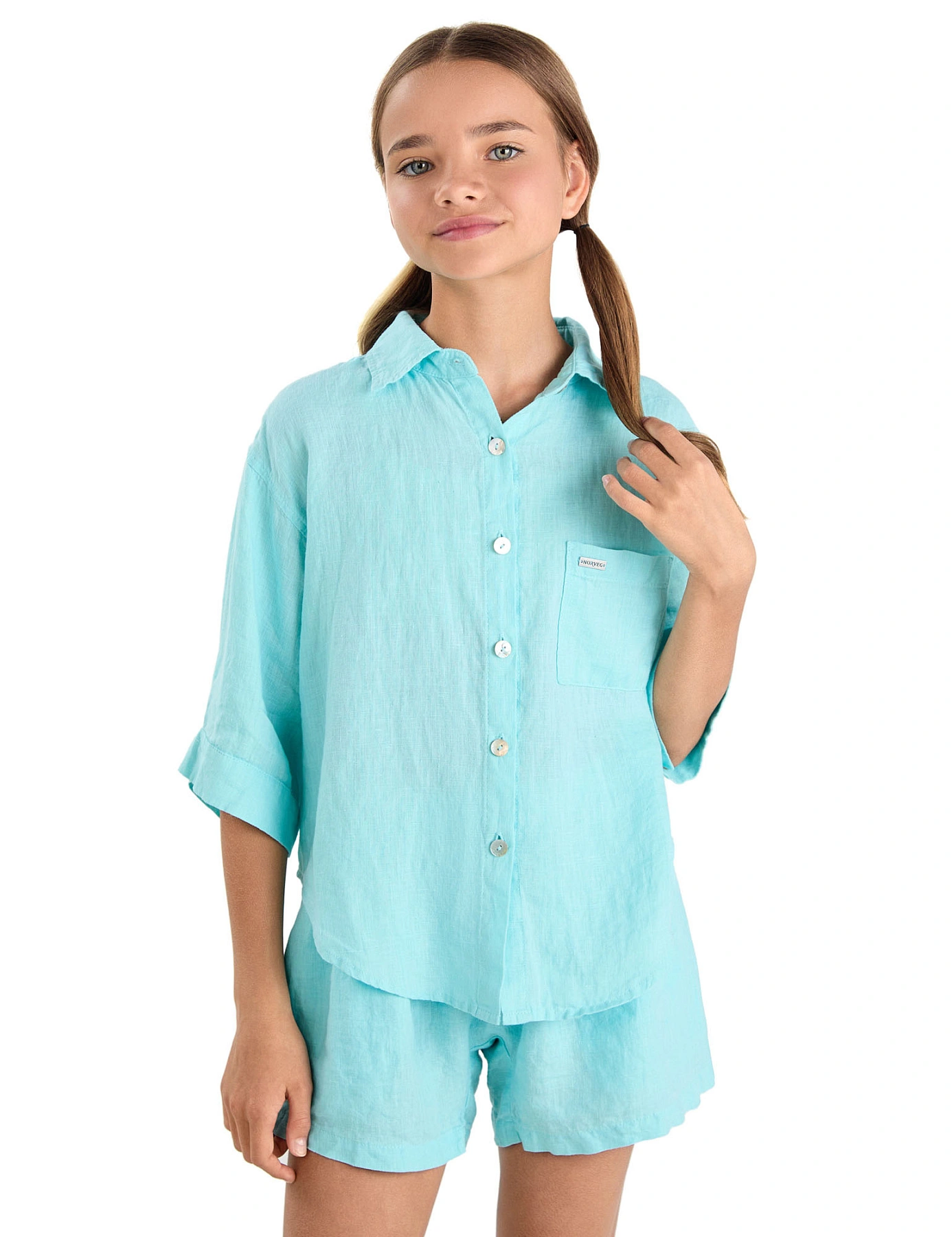 Рубашка для девочек-подростков серии LINEN, цвет тиффани