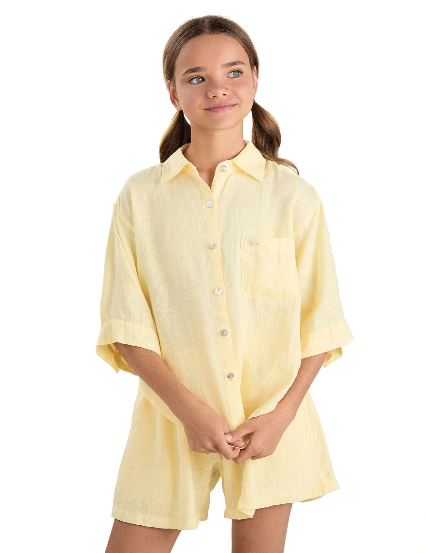 Рубашка для девочек-подростков серии LINEN, цвет бледно-желтый