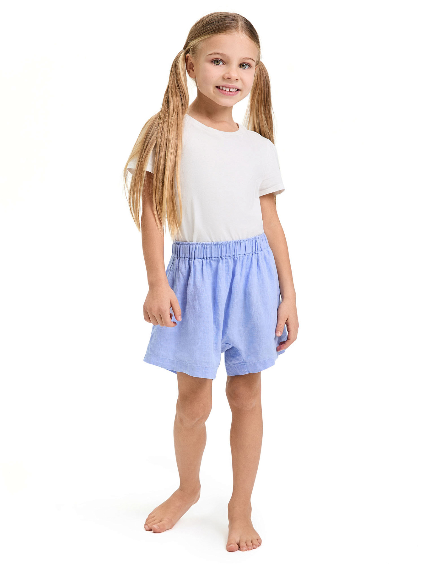 Легкие, удобные шорты простого фасона из умягченного льна. Экологичная, износоустойчивая одежда, созданная с заботой о здоровье детей.