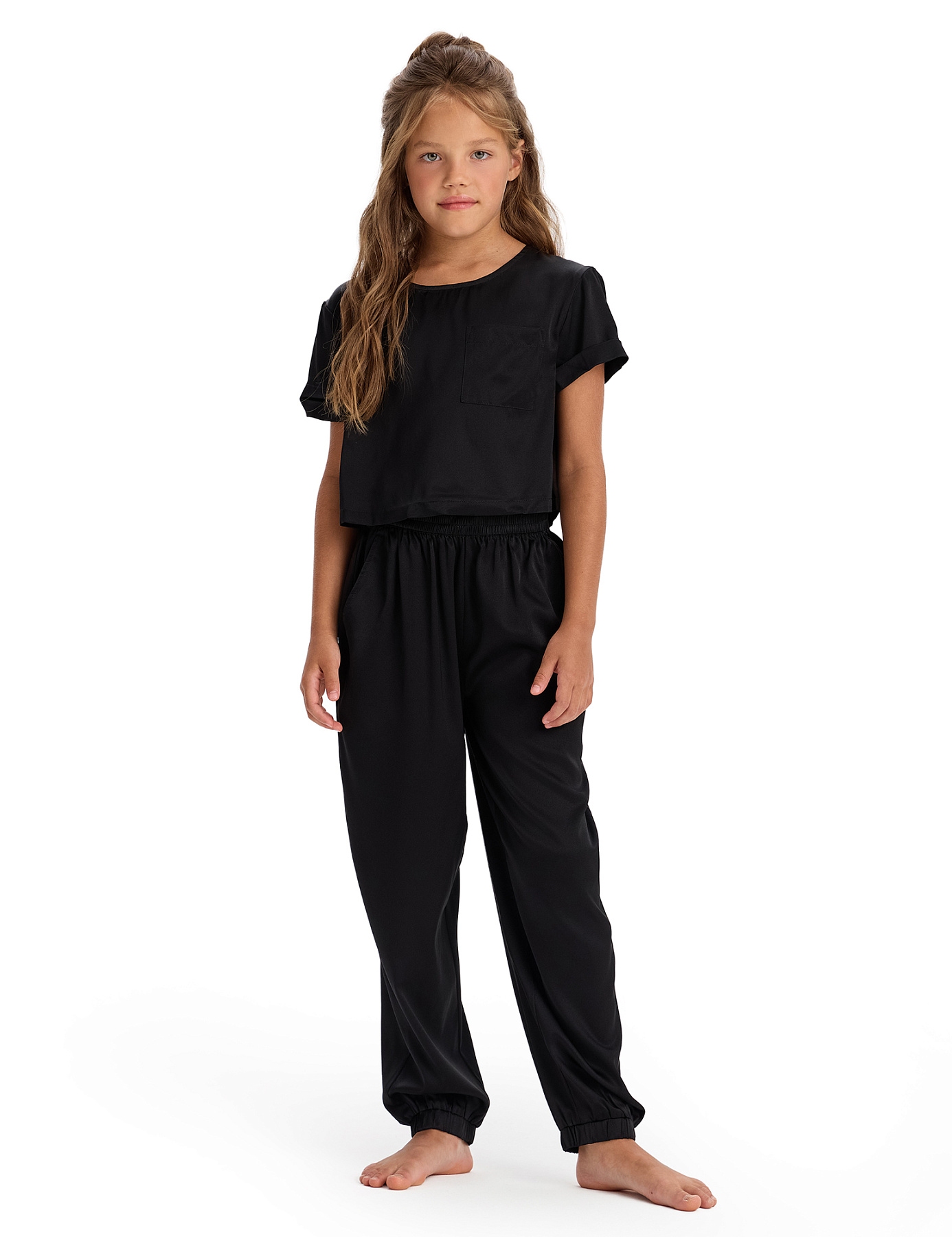Очень красивый комплект  и смотрится дорого. Дочка его снимать не хочет. Летом - спасение, брали с собой и на море и в городе гуляли - прелесть. Удобный, стильный, а главное материал чудесный. Ну что сказать  - натуральный шелк говорит сам за себя. Спасибо, очень довольны покупкой.