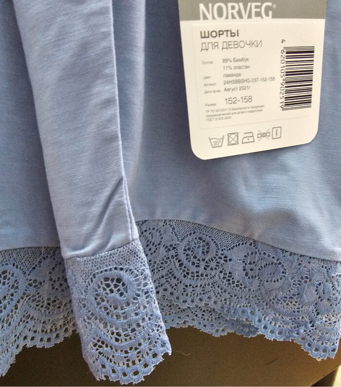 Очередной покупкой от любимого мной бренда одежды Norveg стали детские шорты из коллекции «Bamboo». Шорты очень комфортны в носке и уходе. Широкий пояс не скатывается и не врезается в животик. Пояс  не  регулируется. Внизу очень кокетливые кружавчики)) очень мило выглядят. Шорты полноразмерные, соответсвуют заявленной производителем размерной сетке. Рекомендую к покупке! Ребенок смотрится в них стильно)