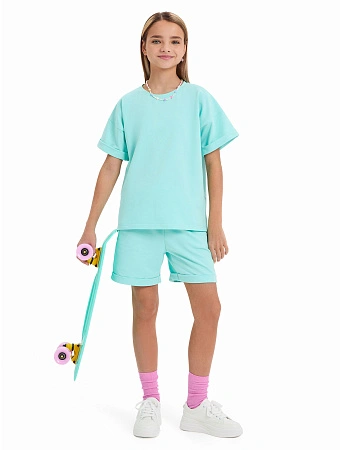 Шорты для девочки серии LINEN, цвет тиффани, фото 1