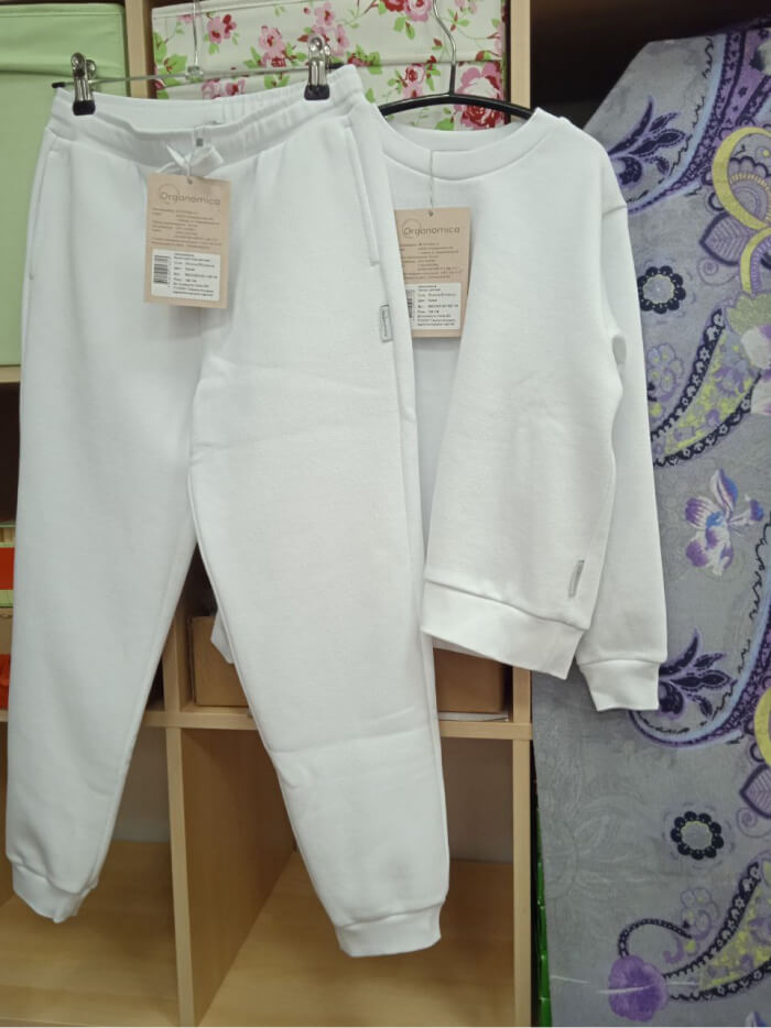 Купила такой костюм дочке. Классный! Прям супер. Не смотря на то, что он белоснежный, стирается прекрасно и очень быстро сохнет, всегда чистенький. Внутри он  с начесиком, так что на весну подойдет идеально. Можно и для спорта и в обычной жизни носить, и как нарядный. Очень стильно выглядит. Рекомендую.