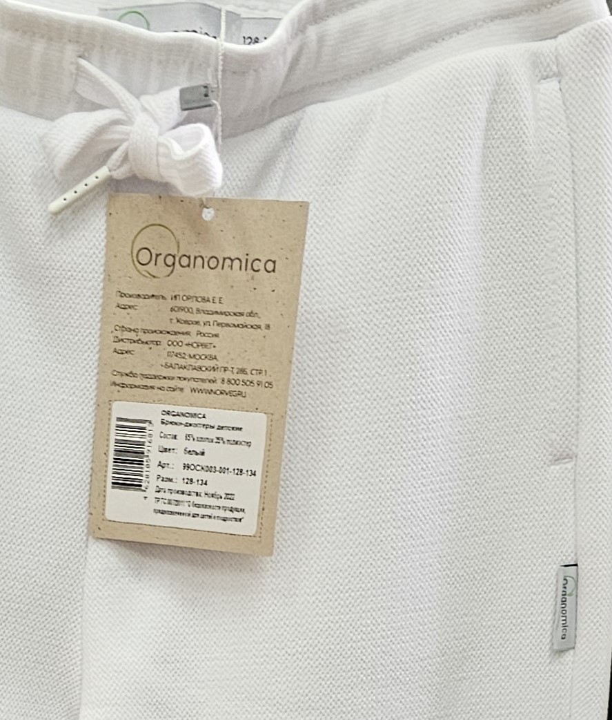 Джоггеры детские ORGANOMICA Cotton, цвет белый