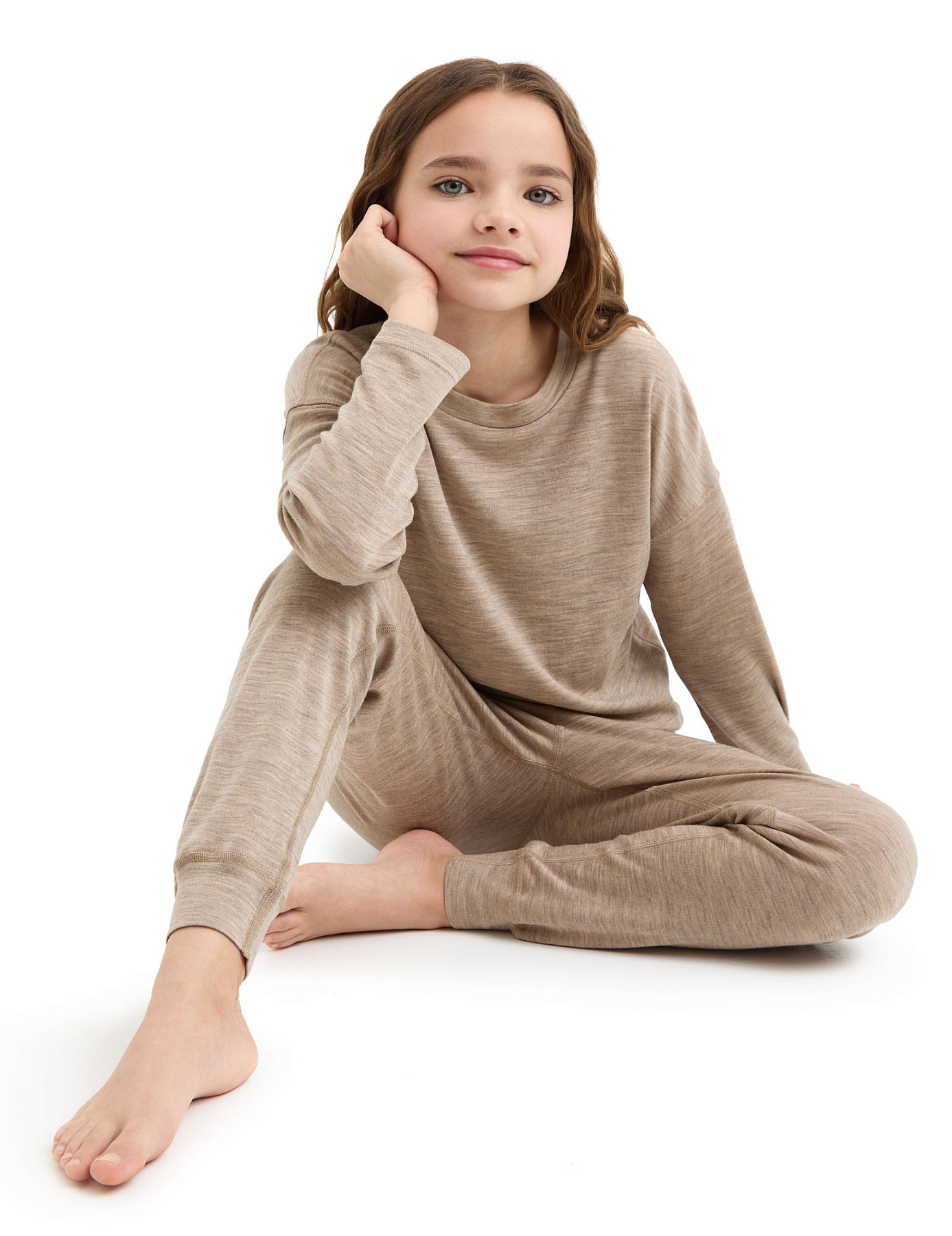 Пижама для девочки-подростка из шерсти мериносов, цвет коричневый меланж