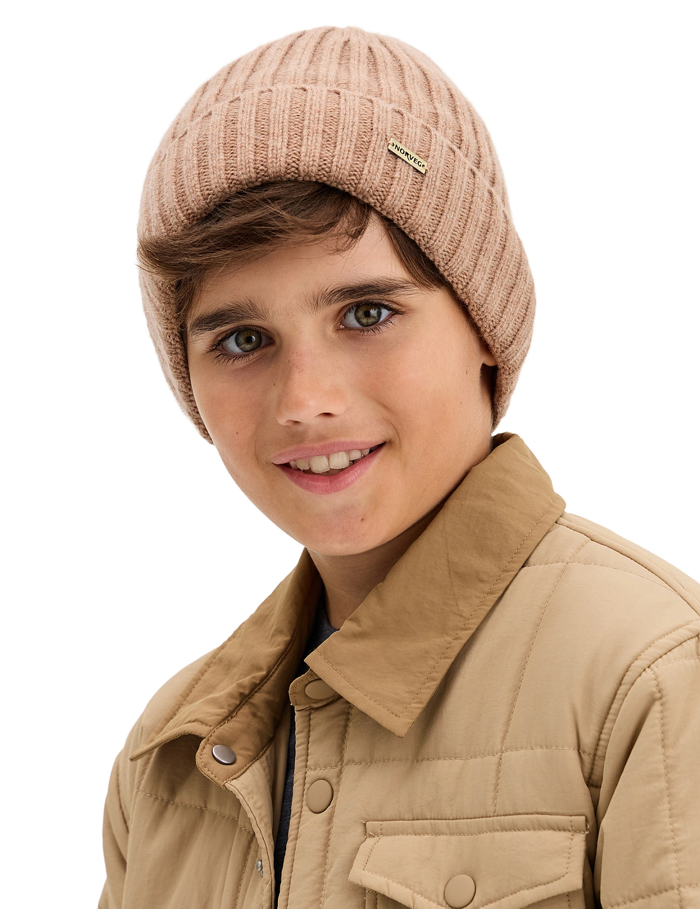 Шерстяная шапка с отворотом, цвет бежевый меланж