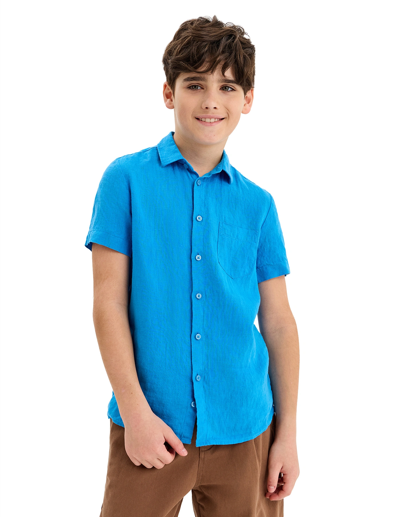Рубашка для мальчика с коротким, цвет лазурный