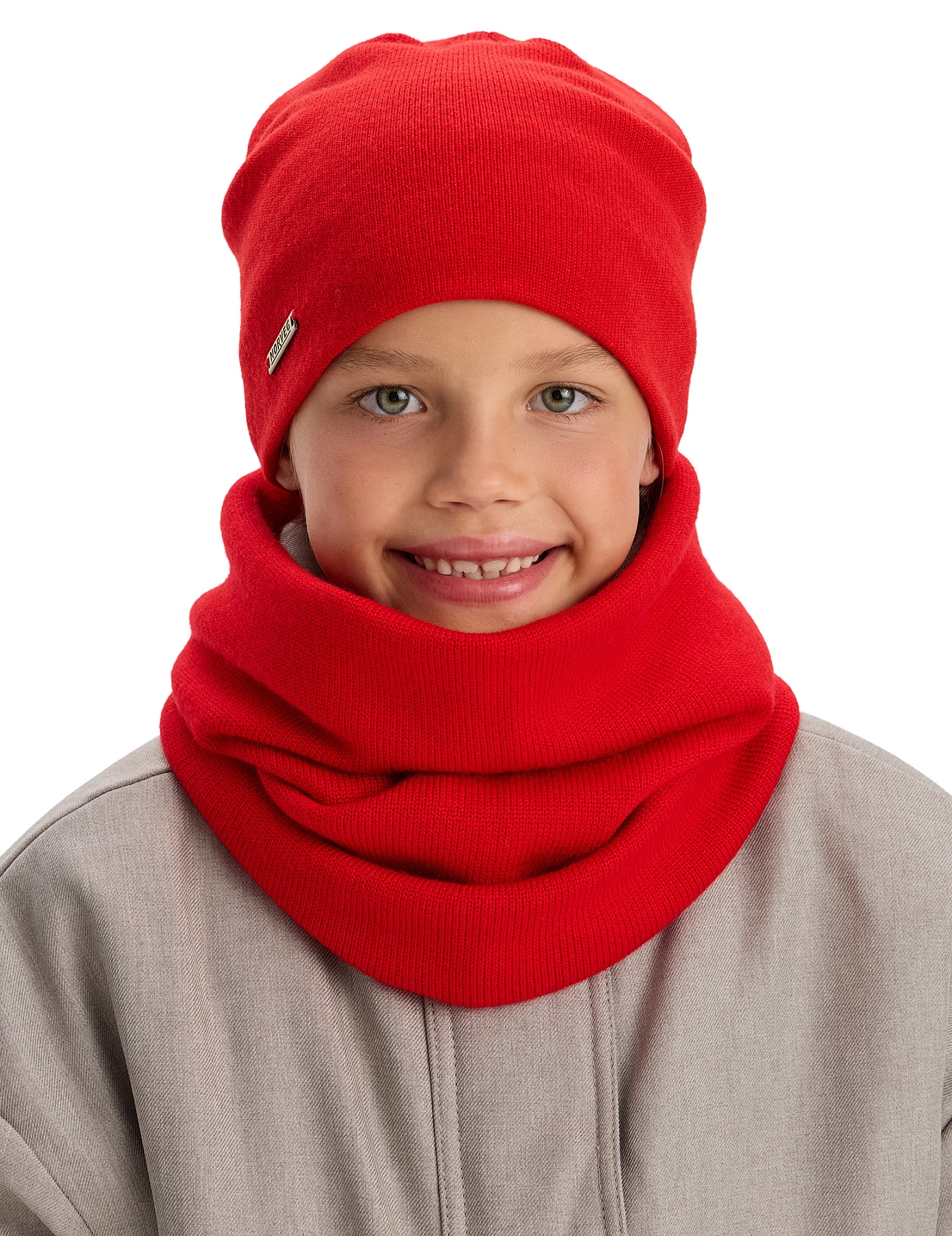 Комплект шапка и снуд из 100% шерсти мериносов, цвет алый