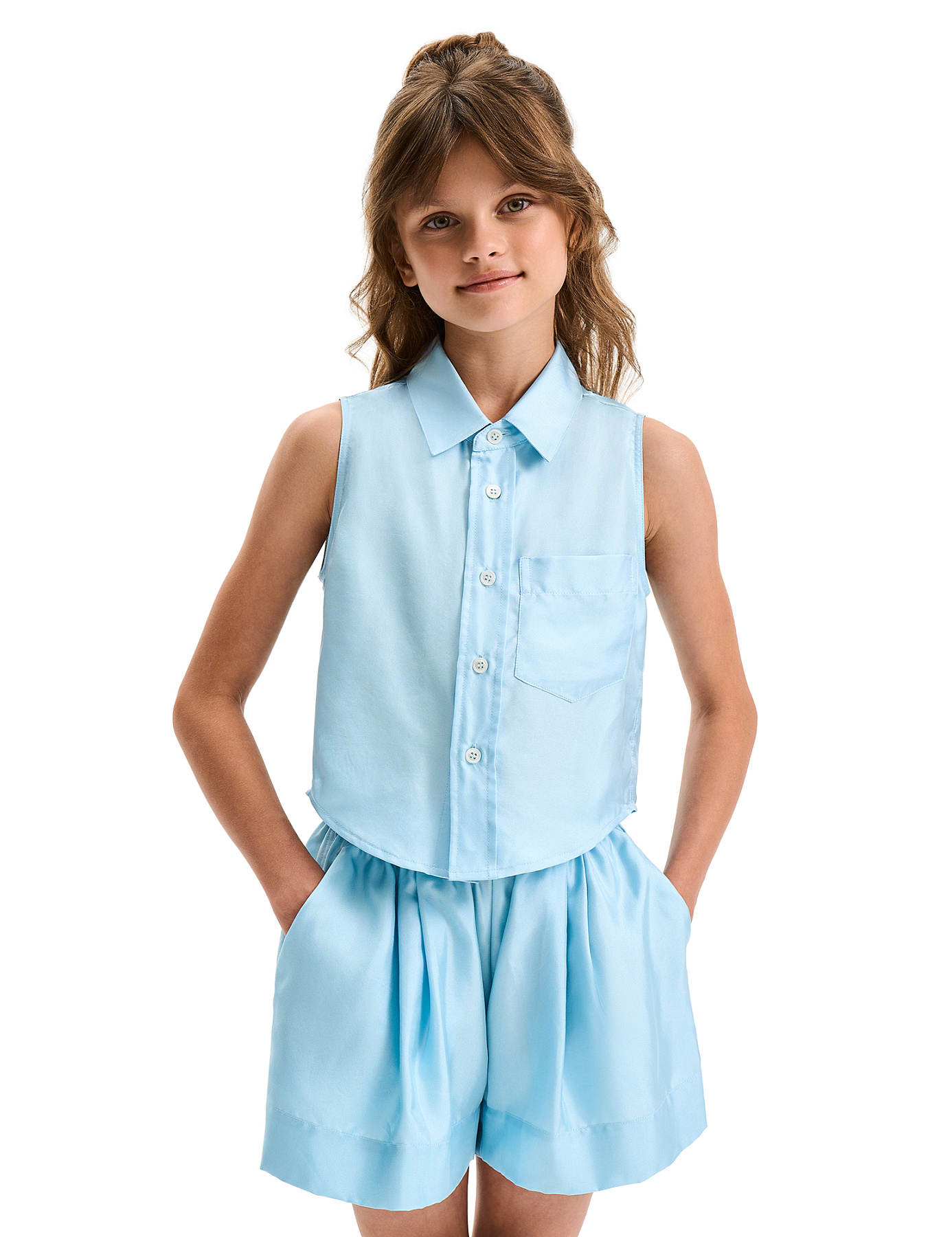 Блуза SILK для девочки без рукавов, цвет нежно-голубой