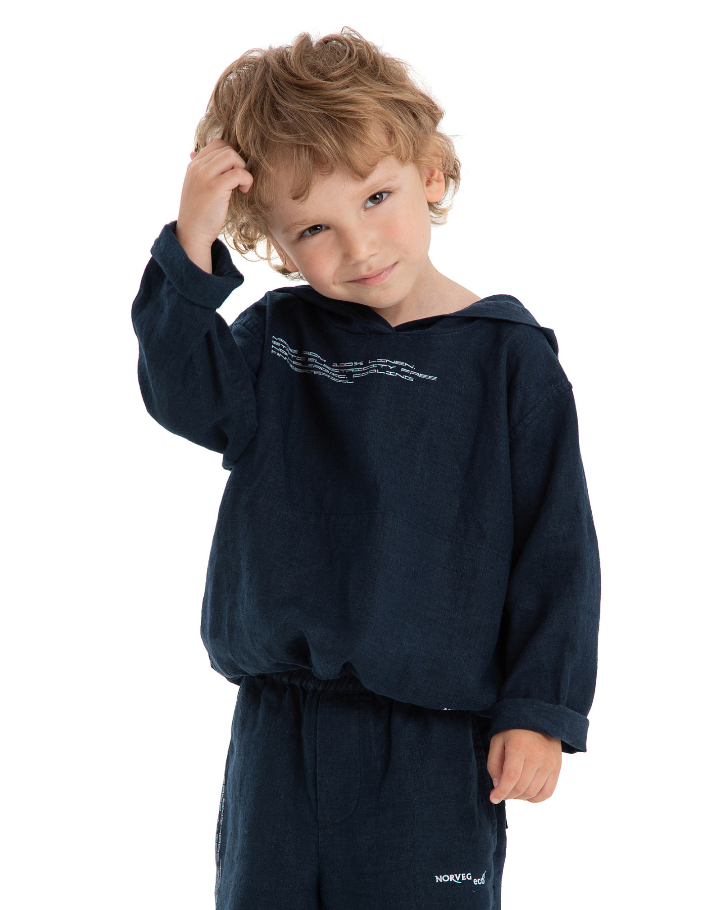 Худи из 100% льна для мальчиков, цвет темно-синий