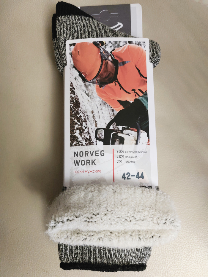Носки комфортно, без пережимания, облегают ноги, не сползают и не сбиваются при ношении и фиксируются на икрах при помощи тонкой анатомической резинки. Оптимальная длина позволяет заправлять в носки теплые кальсоны и подходит для ношения с ботинками, сапогами и любой спецобувью.