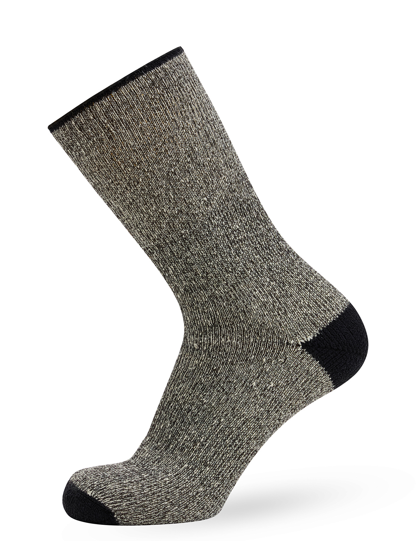 Натуральная шерсть, из которой выполнен внутренний объемный махровый слой, обеспечивает аккумуляцию тепла у поверхности кожи и сохранение постоянной комфортной температуры благодаря естественной терморегуляции. Шерстяные волокна осуществляют микромассаж кожи, улучшая тем самым кровоток, и предупреждают натирание стоп. Внешний слой из полиамида делает носки износоустойчивыми и сверхпрочными в местах повышенных нагрузок. Волокна эластана определяют хорошую растяжимость и удобство при надевании. Эффективное отведение влаги с поверхности кожи сохраняет ноги сухими, предупреждает образование неприятных запахов даже при ношении с кирзовой и резиновой обувью.