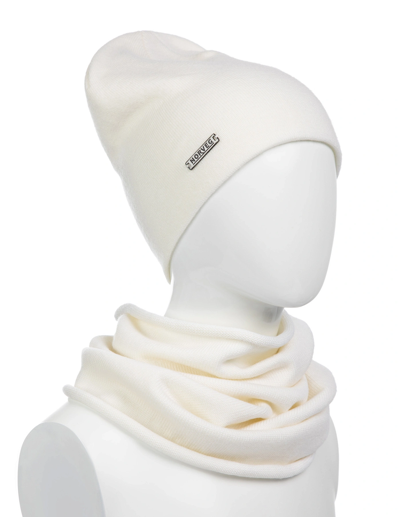 Комплект шапка и снуд из 100% шерсти мериносов для мужчин, цвет белый