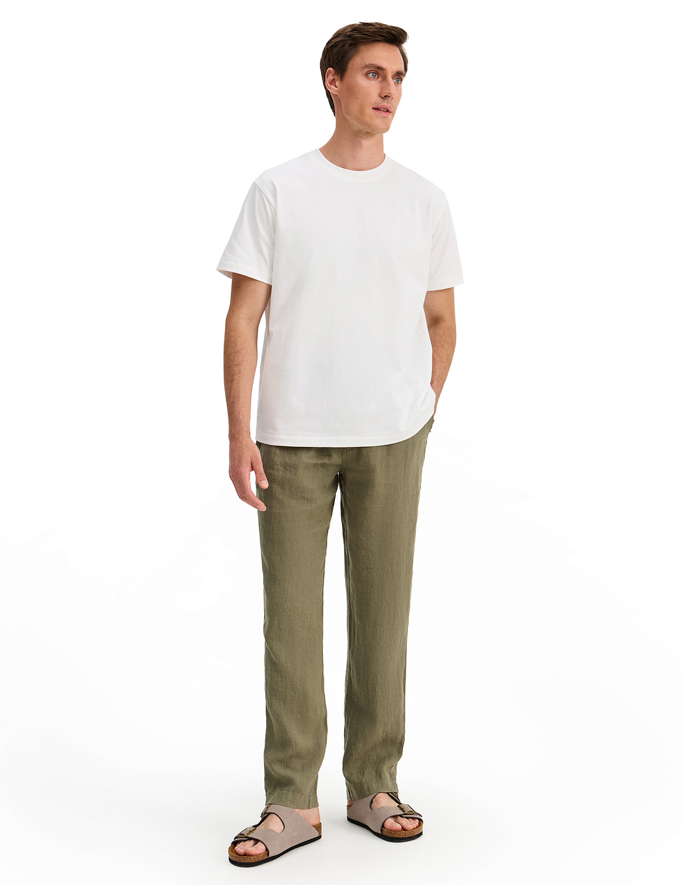 Брюки из 100% льна для мужчин, цвет хаки