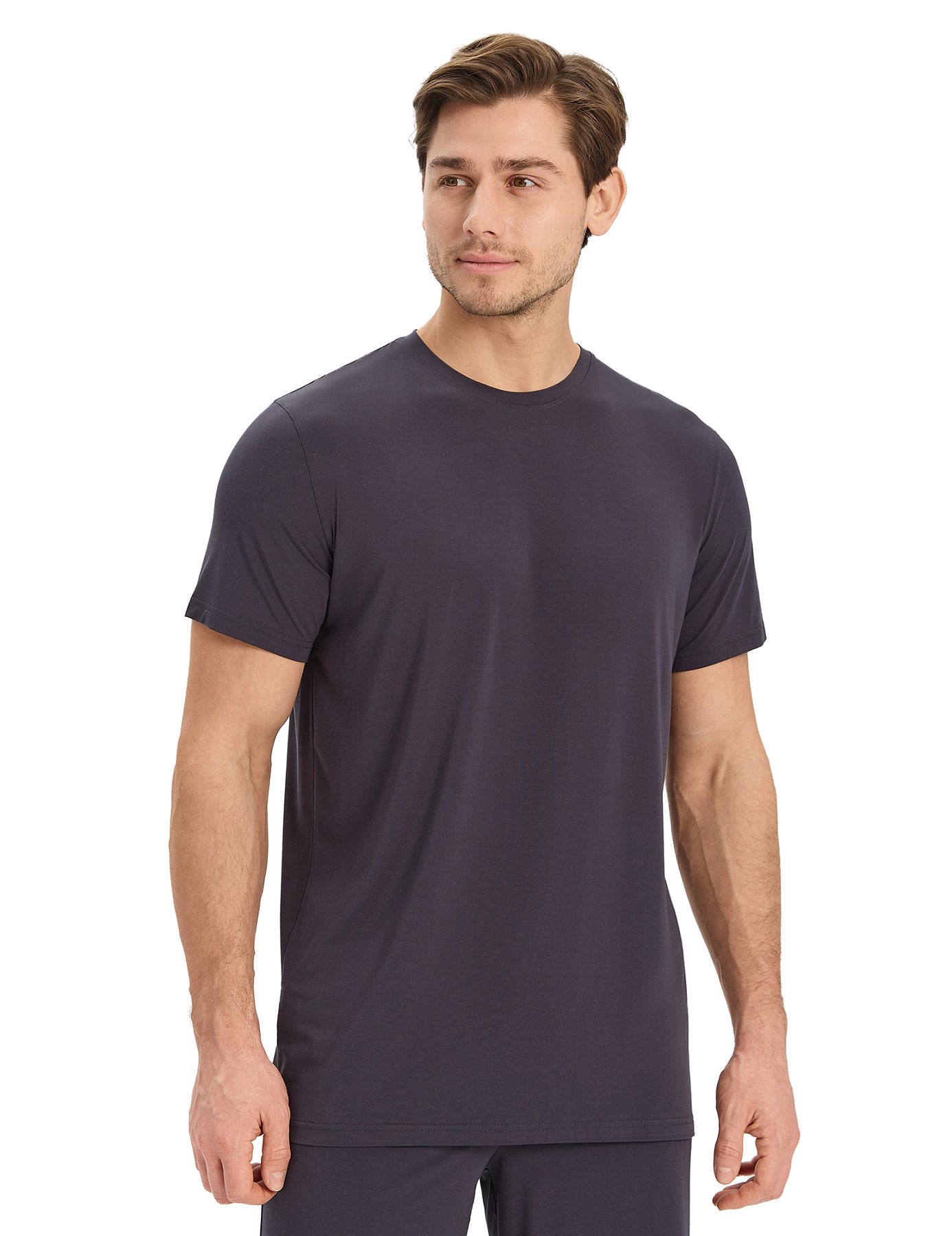 Классическая футболка прямого силуэта с коротким рукавом из мягкого бамбукового текстиля. Универсальная вещь для ношения дома и сна.