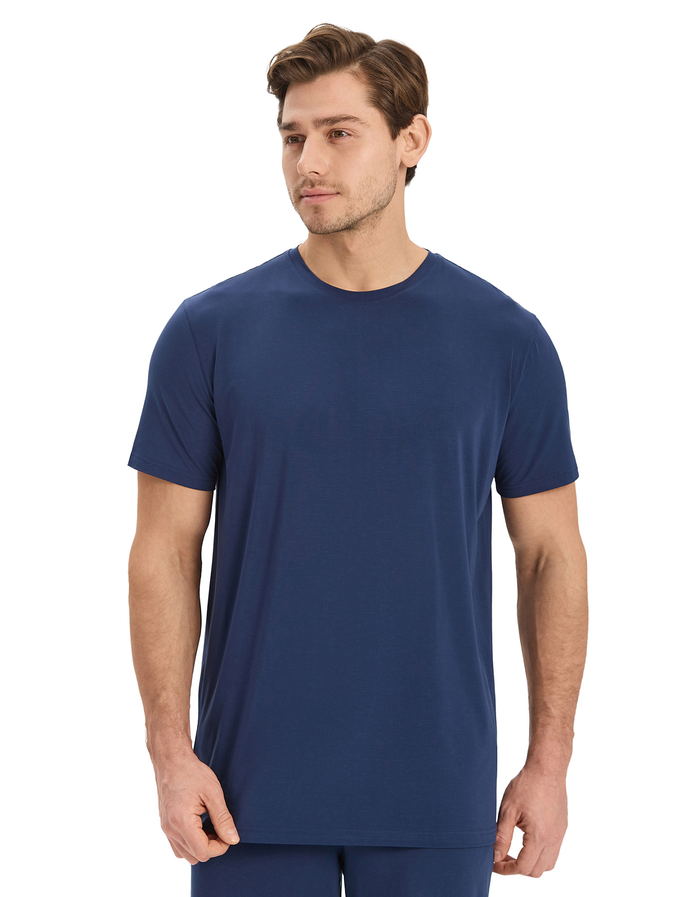 Классическая футболка прямого силуэта с коротким рукавом из мягкого бамбукового текстиля. Универсальная вещь для ношения дома и сна.
