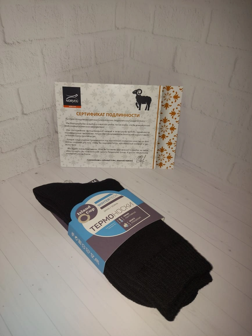 Искали носки, которые "термо" не по названию, а по свойствам и при этом по адекватной цене. Заказали Термоноски Island Cup серии Wintertech. Заказ пришёл хорошо запакованный, с вложенными сертификатом подлинности и инструкцией по уходу за изделием. Сами носки хорошего плотного плетение, комфортно сидят на ноге, не пережимают и не сползают. Хорошая терморегуляция - и тепло и ноги не потеют. Покупкой очень довольны!