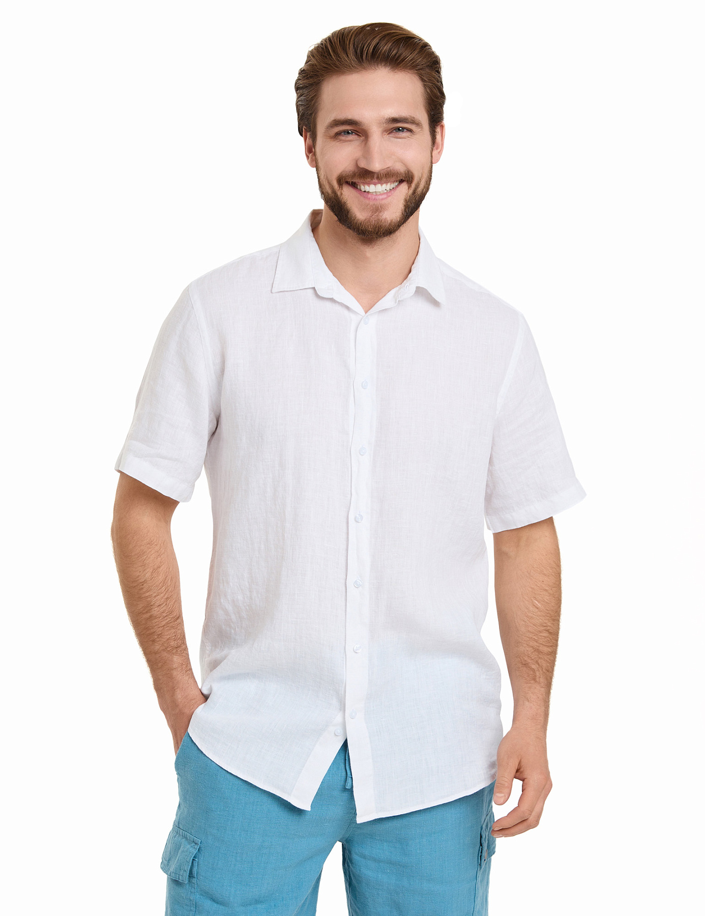 Рубашка мужская серии LINEN с коротким рукавом, цвет белый