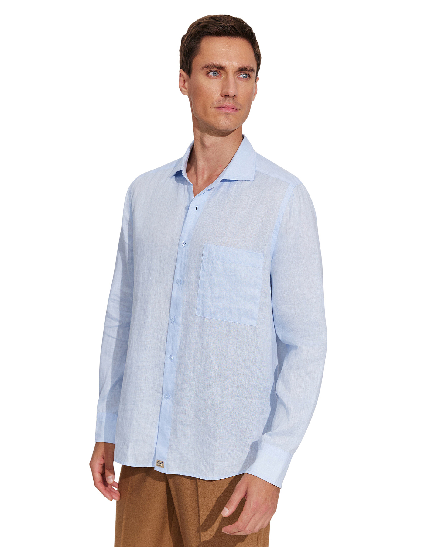 Рубашка мужская классическая 100% лен, цвет бледно-голубой