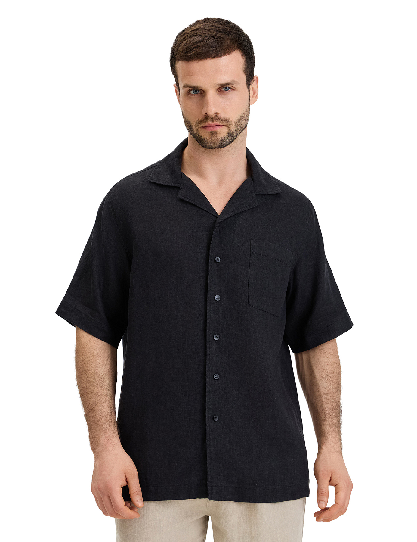 Рубашка мужская с коротким рукавом изо льна, цвет черный