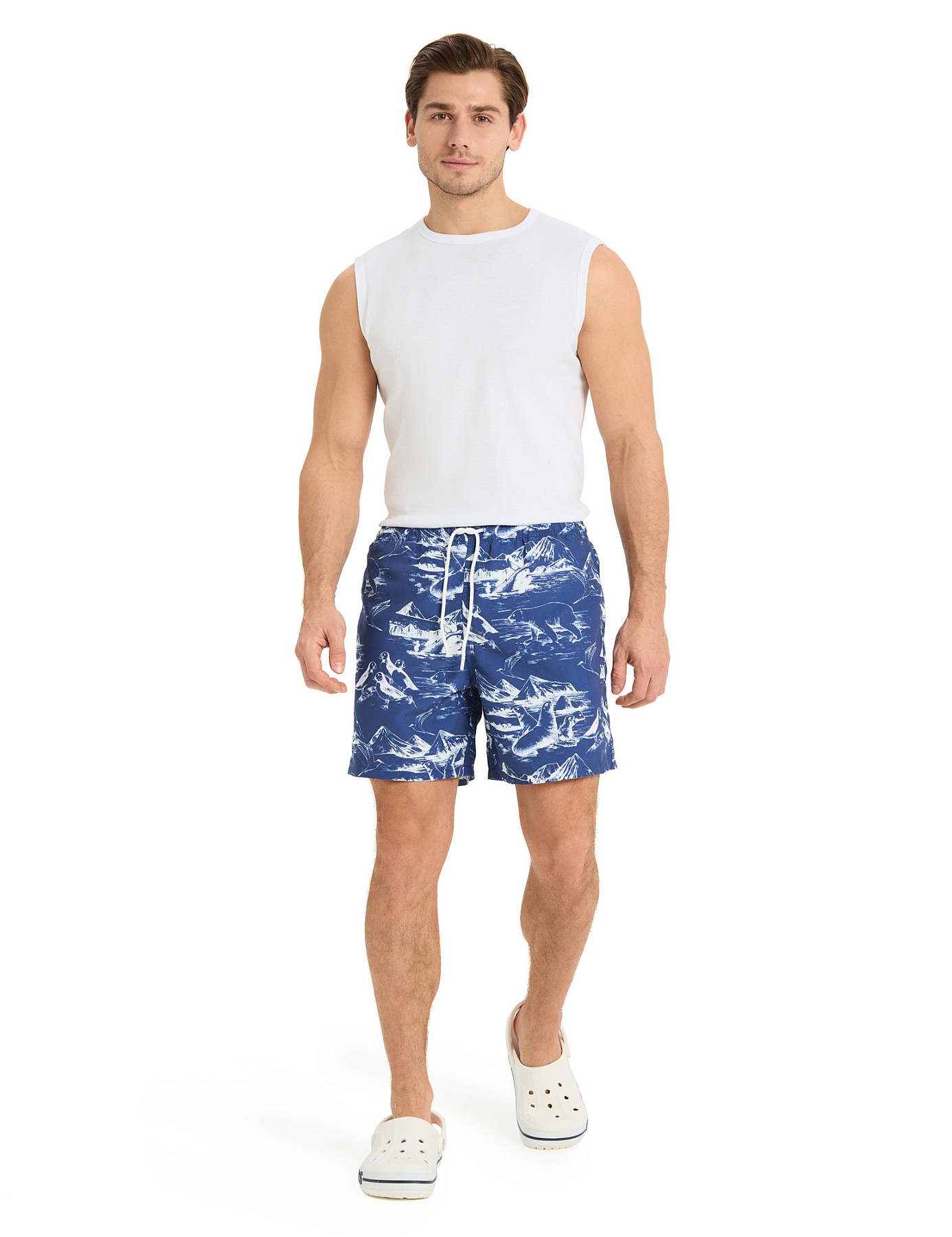 Практичные мужские шорты для плавания с оригинальным фирменным принтом. Универсальная модель для пляжного отдыха, бассейна, акваспорта.