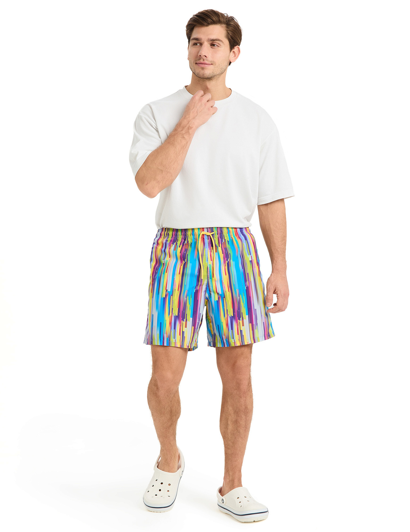 Практичные мужские шорты для плавания с оригинальным фирменным принтом. Универсальная модель для пляжного отдыха, бассейна, акваспорта.