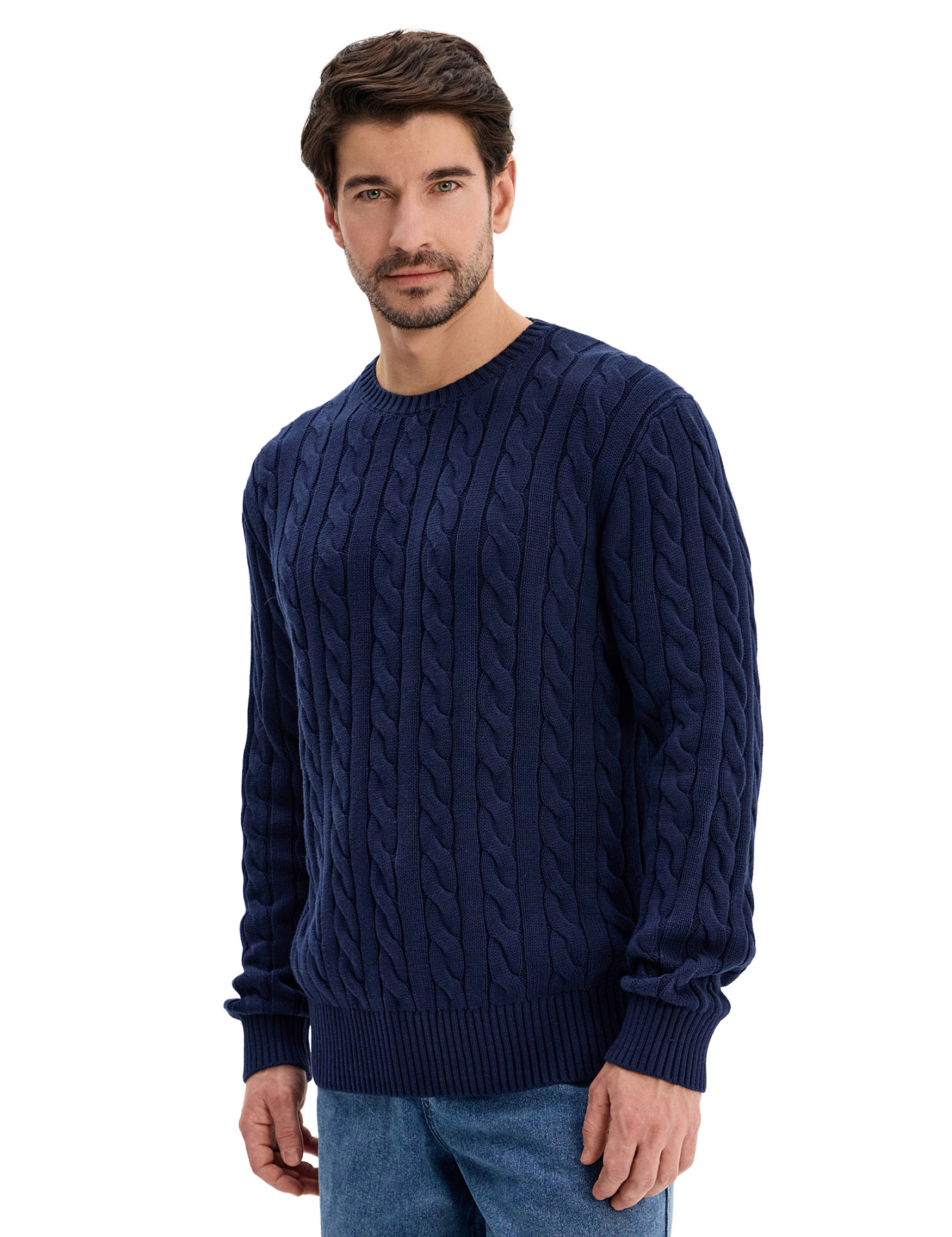 Джемпер Cotton мужской "косы", цвет темно-синий