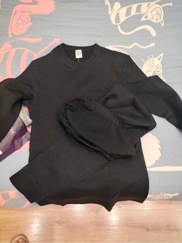 При сильных активных нагрузках синтетический слой быстро отводит влагу. Начес на внутренней стороне создает дополнительную воздушную прослойку и комфорт в носке. Внешний слой белья состоит из смеси шерсти мериносов и полиэстера. Шерсть обладает антибактериальным эффектом, а также обеспечивает комфортную температуру тела. За счет наличия полиэстера в ткани, изделие очень долговечно и не прихотливо в уходе.