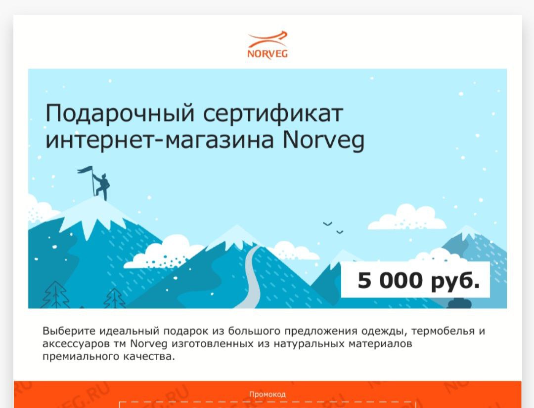 Подарочный сертификат интернет-магазина Norveg