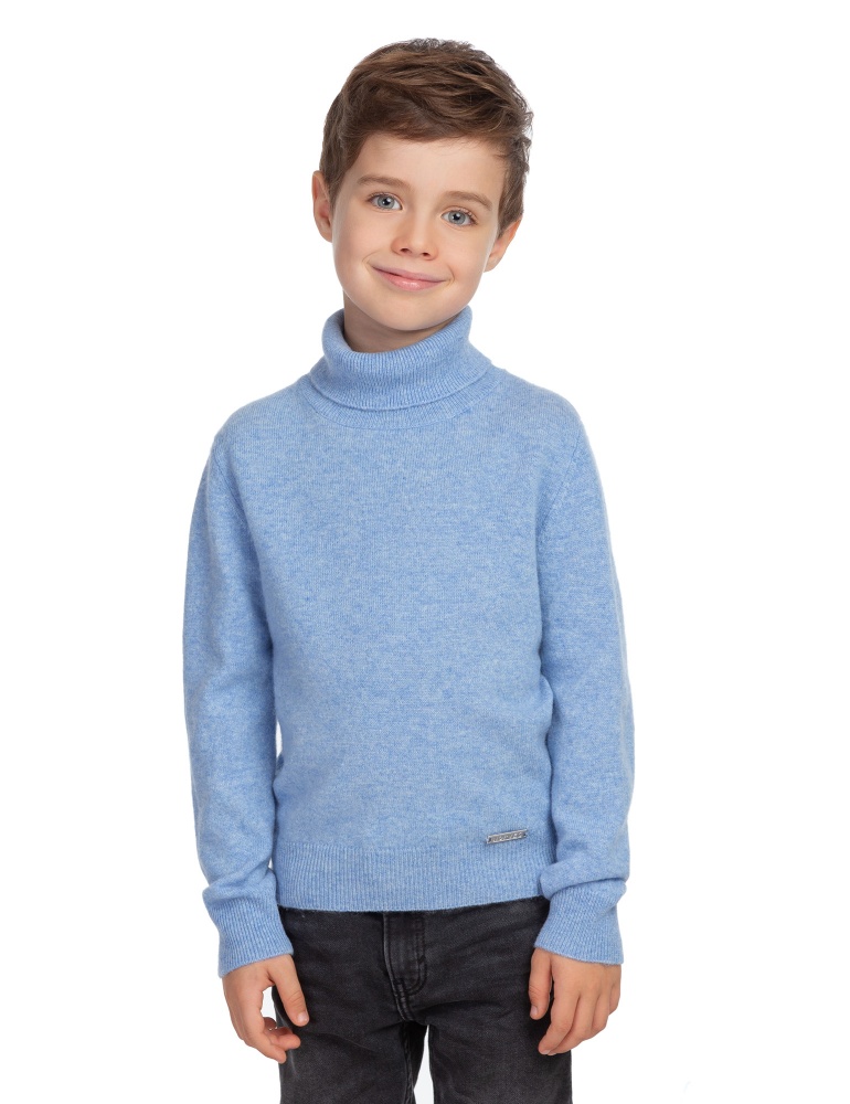 Свитер Cashmere детский для мальчика с высоким воротом. Цвет бирюзово-синий