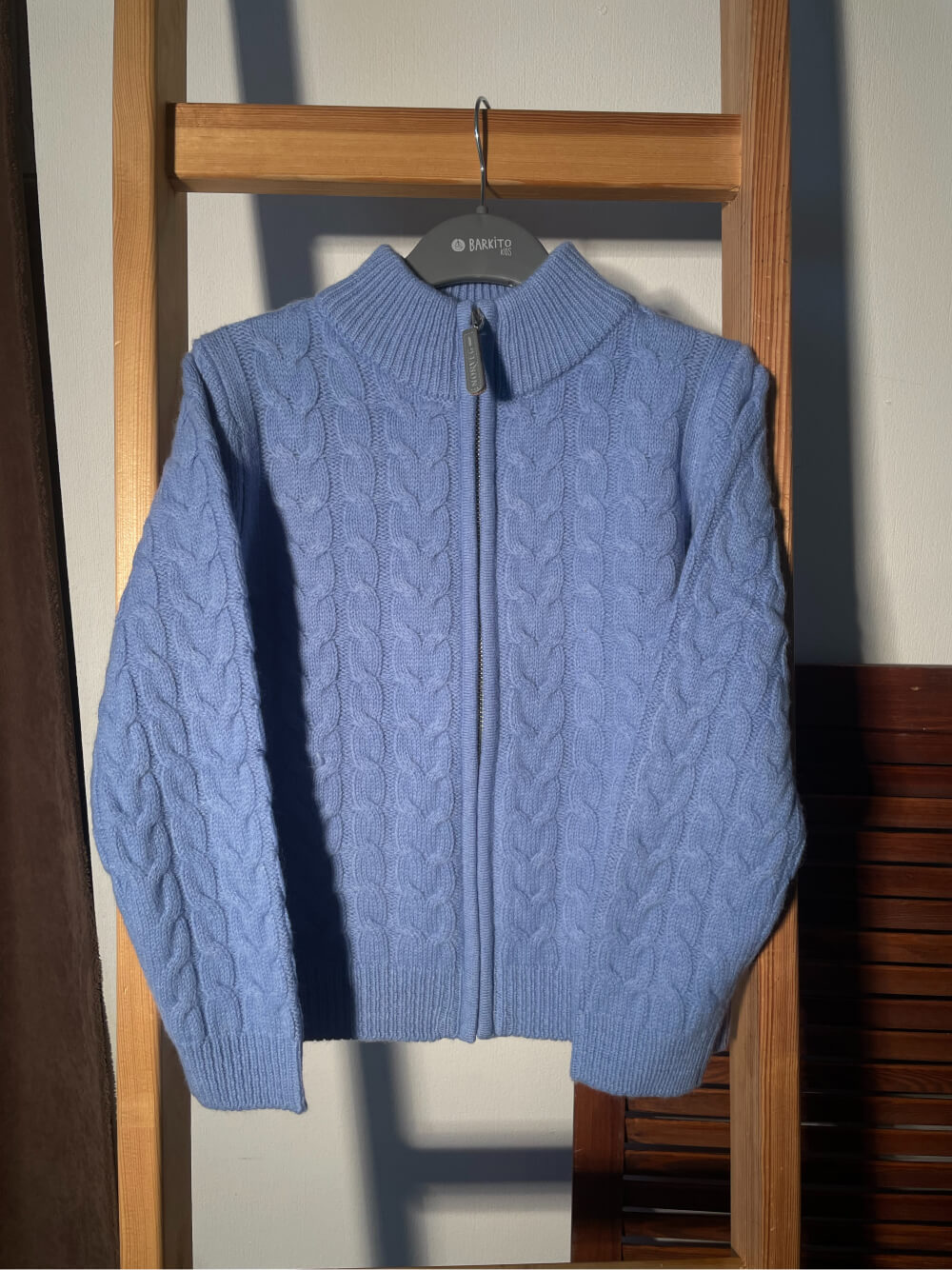 Классная кофта, косы- это любимый и самый популярный рисунок вязки. Удобно, что полностью растегивается, для детей это самый лучший вариант. Стирать только нужно аккуратно, в составе 100% шерсть!