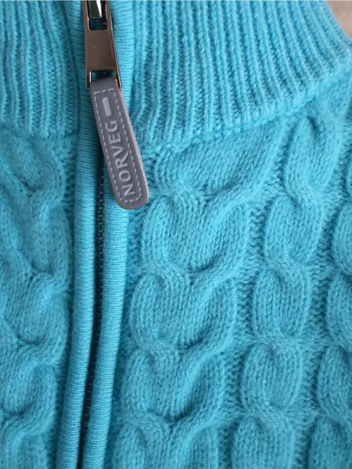 Нарядная и очень теплая кофта с косами на молнии отлично согреет на прогулке в зимнюю стужу, отведет избыток тепла в помещении.