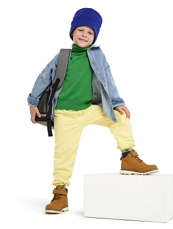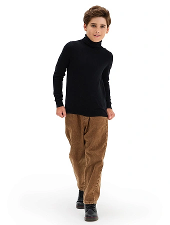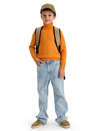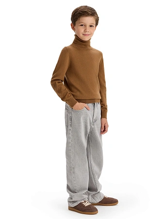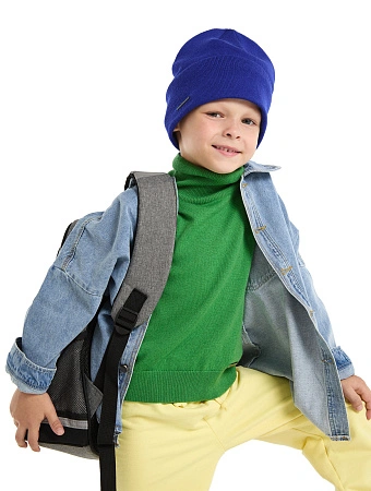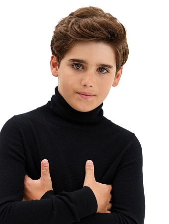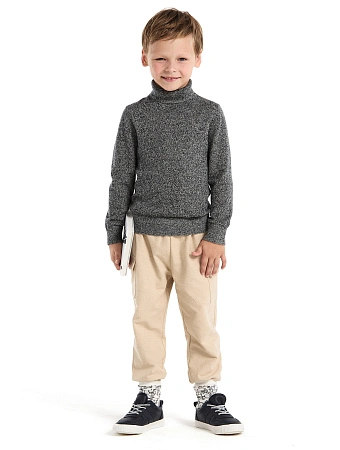 Очень стильный и действительно теплый свитер. Понравилось, что свитер имеет высокую горловину и резинку снизу. Классическая обязательная вещь для ребенка.