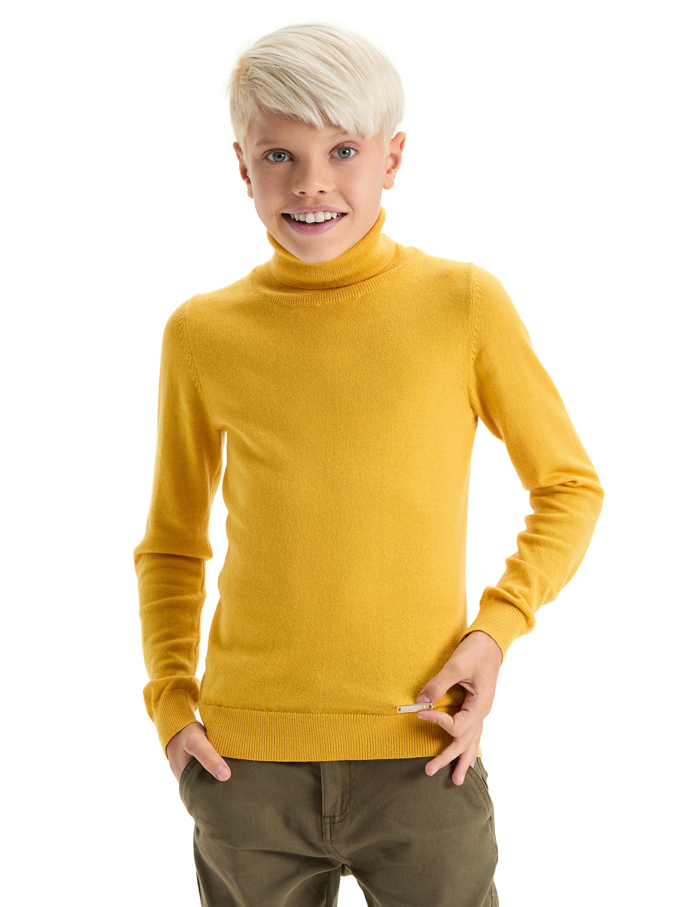 Классный шерстяной свитер, всей семье понравился этот сочный оранжевый цвет! Очень теплый, есть резиночки внизу на манжетах, хорошо садится по фигуре, смотрится очень аккуратно. Удобно, что есть высокое горлышко, можно не надевать снуд. Сыну очень нравится, рекомендуем!