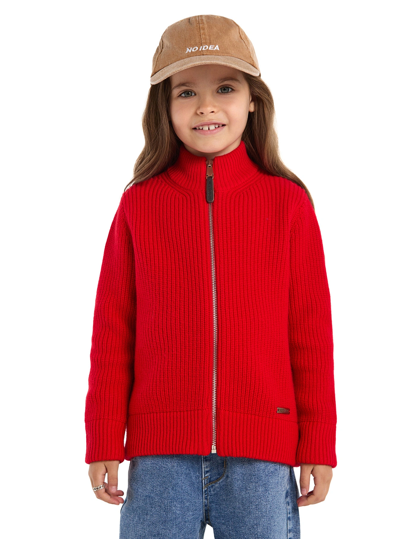 Кардиган из 100% шерсти мериноса на молнии для девочек, цвет красный