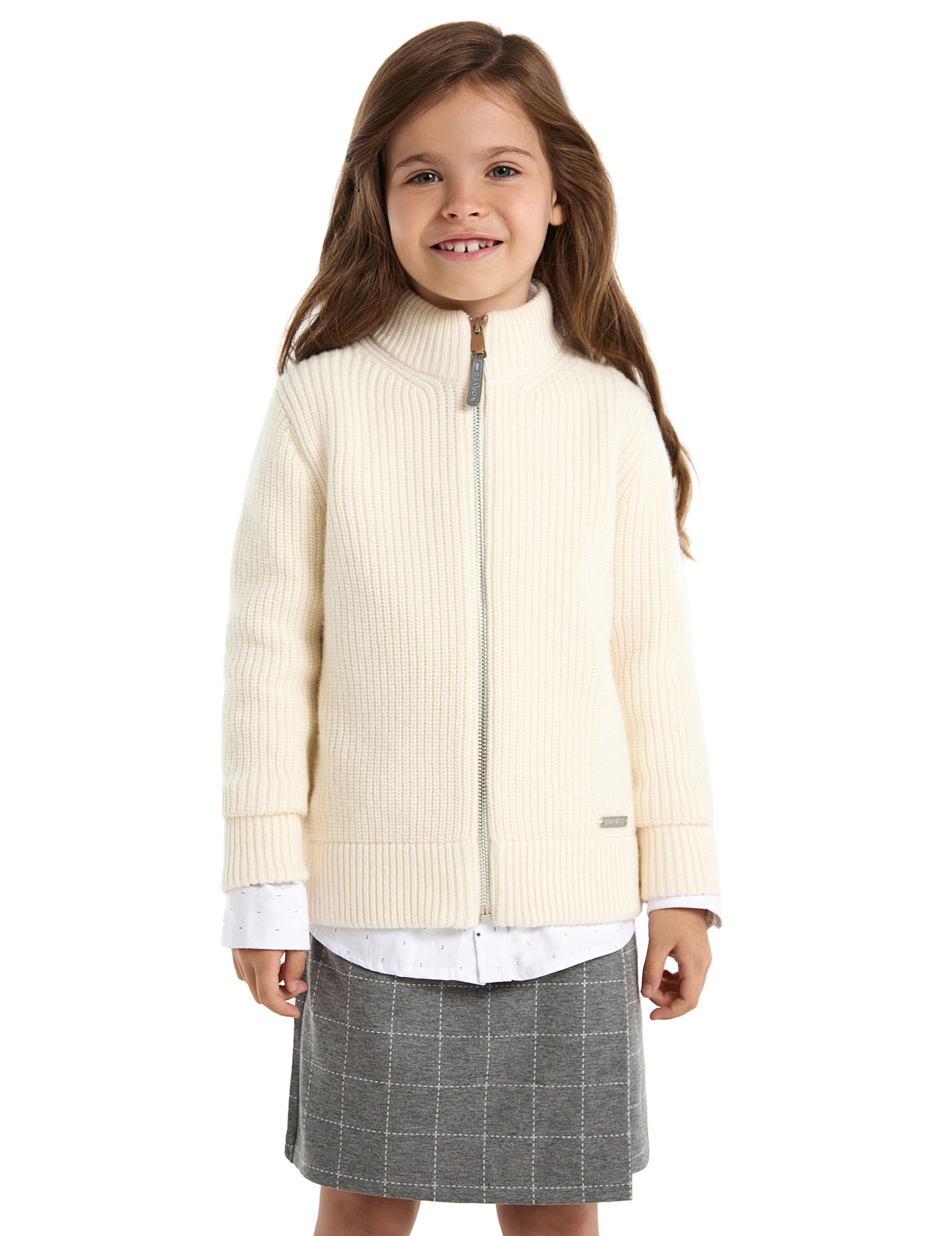 Кардиган из 100% шерсти мериноса на молнии для девочек, цвет молочный