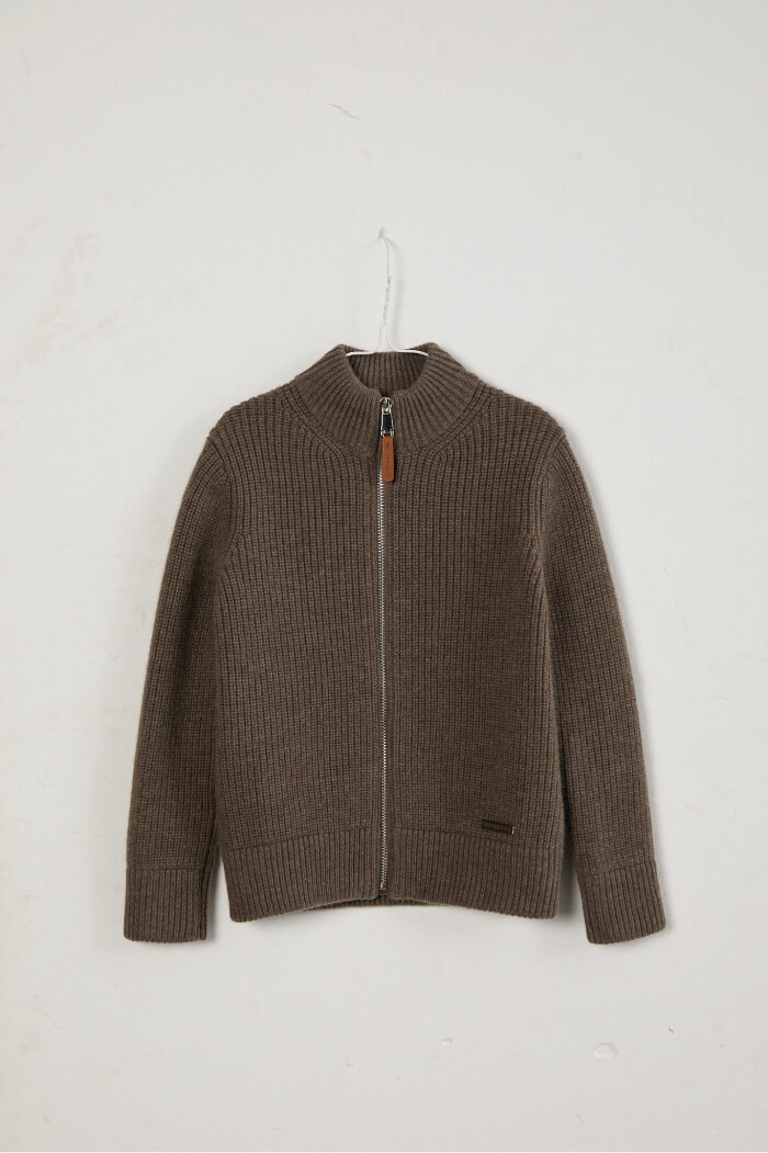 Кардиган из 100% шерсти мериноса на молнии для девочек, цвет бежевый