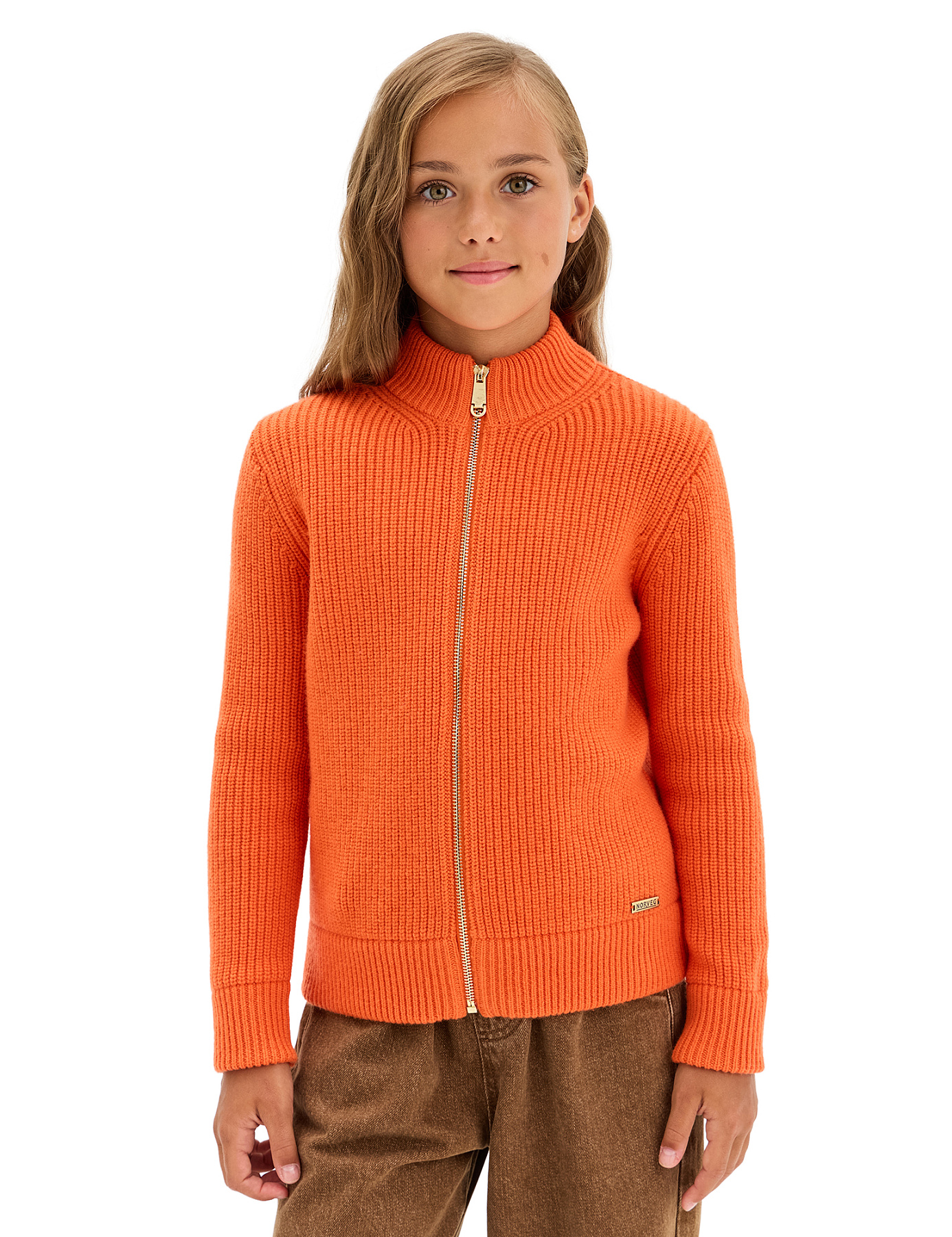 Кардиган из 100% шерсти мериноса на молнии для девочек, цвет оранжевый коралл
