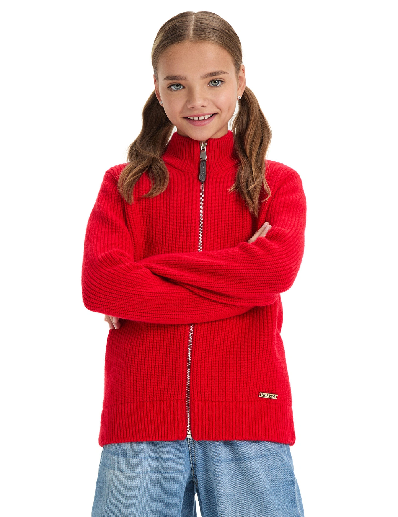 Кардиган из 100% шерсти мериноса на молнии для девочек-подростков, цвет красный